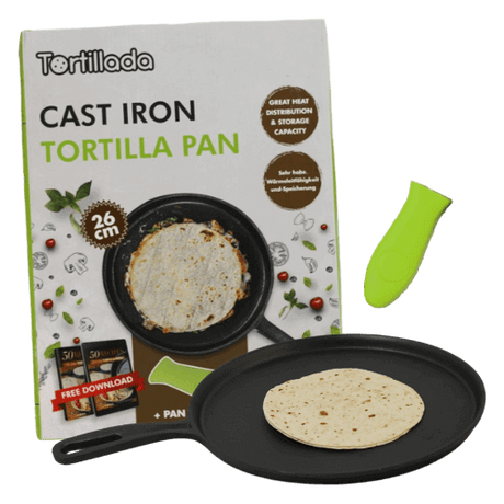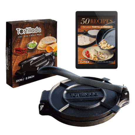 Tortilla Presse Tortillada 20 cm aus Gusseisen für selbstgemachte Tortillas + Rezept eBook