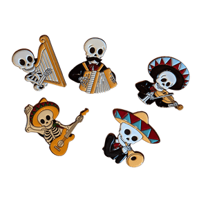 Mexican Mariachi Dia de los Muertos pins / buttons set of 5 and individually - Set of 5 is backordered and will ship as soon as it is back in stock.