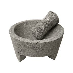 The word molcajete comes from Nahuatl molli (sauce) and caxitl (cajete), mollicaxtli. It is known that this type of mortar was used for the preparation of food since the time of the Egyptians (1550 BC). Its concave shape is perfect for crushing spices, grains and vegetables in small quantities.