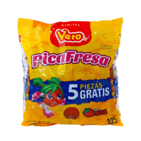 ¡La combinación ideal ente lo dulce y lo picosito! Las Pica Fresa de Dulces Vero son gomitas confitadas con chile y azúcar con un delicioso sabor a fresa. Esta presentación incluye 100 piezas de 6 gr cada una, por lo que podrás compartirlos con tus amigos.