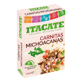 Carnitas sind nach mexikanischer Art langsam gegartes Pulled Pork. Normalerweise wird es in einem großen Topf zubereitet, der vor den Metzgereien steht und in dem es vor Geschmack nur so sprudelt. Obwohl mehrere Staaten über den Ursprung dieser Zubereitung diskutieren, ist es am wahrscheinlichsten, dass sie aus dem Staat Michoacan stammt, und zwar aus der Gemeinde Quiroga. Eine Packung reicht für eine Taco-Mahlzeit zu zweit. Itacate bringt dieses nostalgische Gefühl mit diesen verzehrfertigen Carnitas zu Euch nach Hause. Als in der Pfanne einige Minuten aufgewärmt dienen sie als saftiger Fleischbelag für Eure Tortas, Tacos oder einfach so sind sie ein wirklich authentisch mexikanischer Genuss. Durch die marinierte Zubereitung hält sich das Fleisch lange Zeit genießbar.